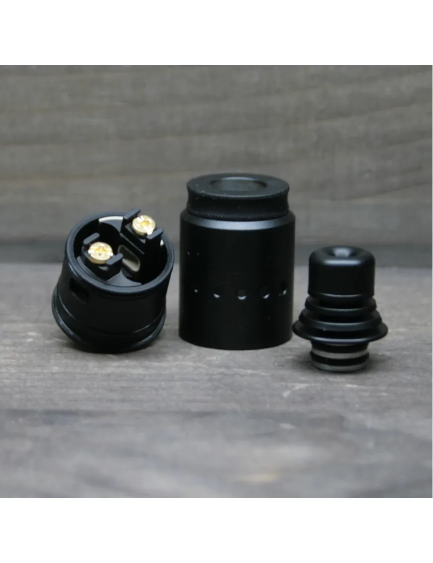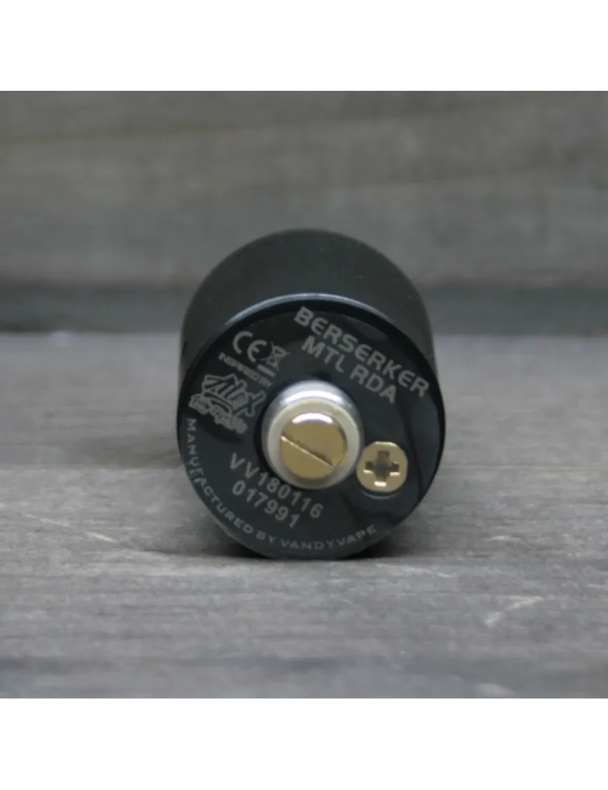 VANDY VAPE представили чудову дріпку з «цигарковою затяжкою». BERSERKER MTL RDA виготовлена з нержавіючої сталі, а дріп-тип із термопластику. Представлена у чотирьох кольорових рішеннях - чорний, золотий, сталевий та райдужний. Дріпка поставляється з двома декоративними кільцями, що робить її універсальною під будь-який дизайн моди. Між дрип-типом і топкепом встановлений корпус, що звужується. У корпусі є кілька отворів, за допомогою яких можна регулювати обдування поворотом бази.