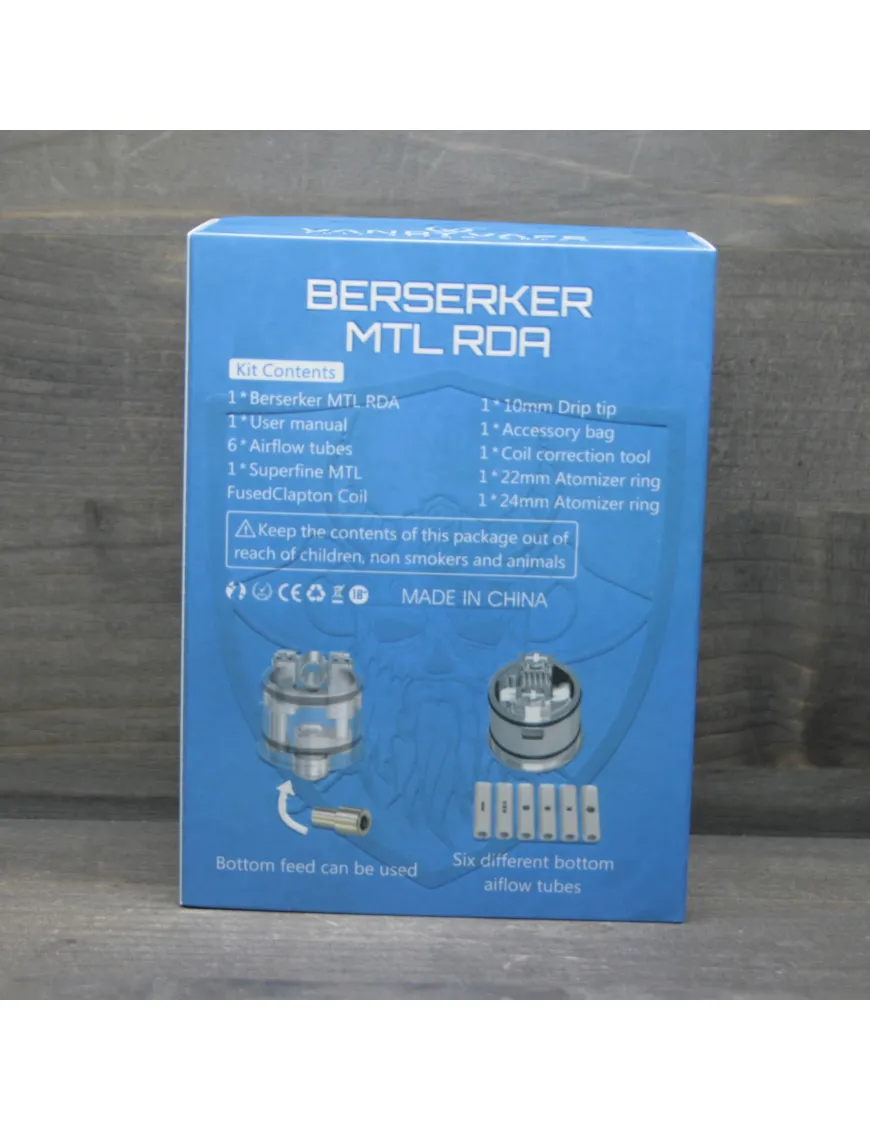 BERSERKER може працювати з одним намотуванням. У базі встановлені 2 стійки для встановлення однієї спіралі. Виробник передбачив змінне обдування. За допомогою шести різних вставок регулювання обдування можна отримати безліч конфігурацій подачі повітря. Повітря подається через бічні отвори і, пройшовши через змінну вставку регулювання, обдуває спіраль знизу. Таким чином можна отримати кращу передачу смаку, залежно від вашого пристрою та переваг.