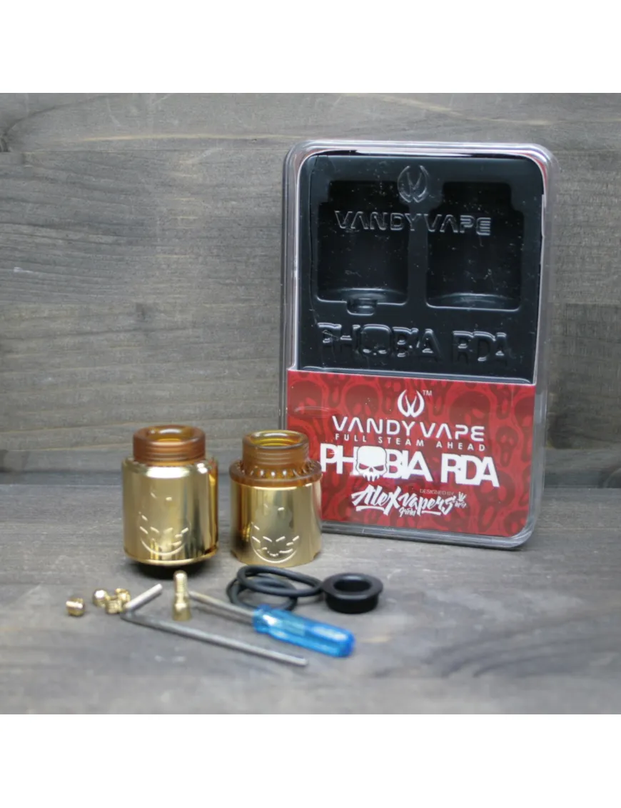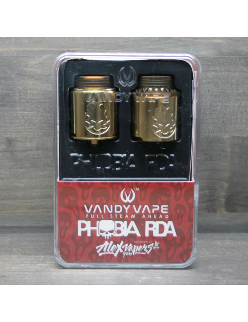 Компанія Vandy Vape спільно з оглядачем Alex from VapersMD випустили новий пристрій під назвою Phobia RDA. Представлена у популярних кольорах. Дуже лаконічний дизайн. Корпус виконаний із нержавіючої сталі. Купол із сферичною обробкою. На спідниці є гравіювання у вигляді вогняного черепа.