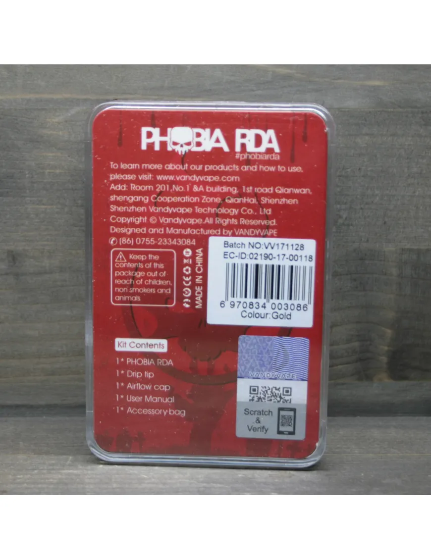Під час розробки Phobia RDA передбачалася вертикальна установка спіралей. Передбачається можливість як однієї, так і двох спіралей. База двостоїчна. Ніжки фіксуються за допомогою позолочених гвинтів, хрестових або під шестигранник.
