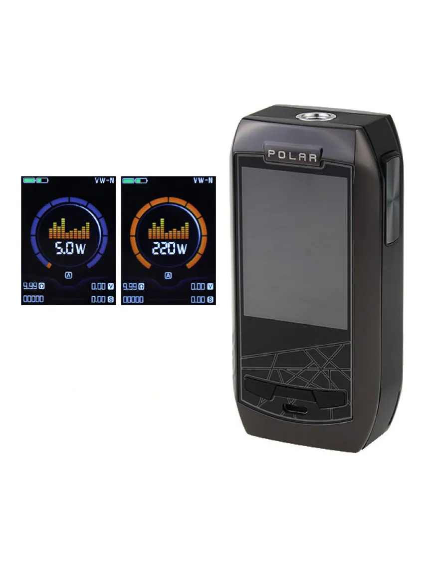 Vaporesso Polar 220W TC - новинка компанії Vaporesso, який має вкрай великий кольоровий екран і величезну різноманітність режимів роботи.