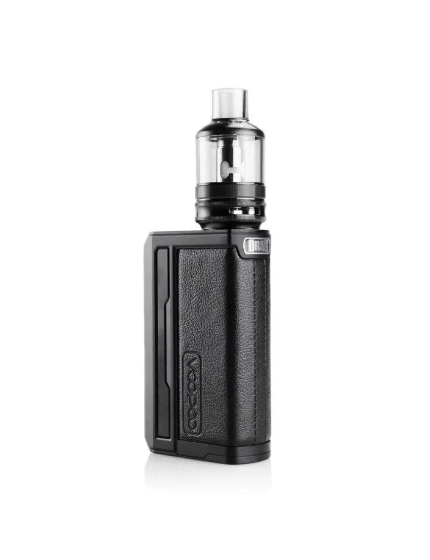 Величезне ім'я серії DRAG з одного боку, як і логотип компанії VOOPOO з іншого, тиснені на декоративних накладках з екошкіри, наголошують на спадкоємності традицій. Скошені кути лицьової грані є даниною сучасним трендам оформлення.