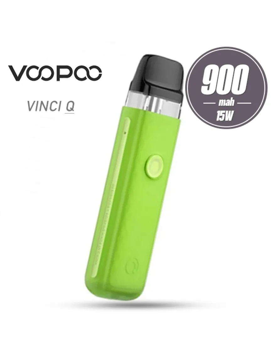 Voopoo Vinci Q Pod Kit 900mah - компактна Pod система із вбудованим акумулятором середньої ємності, варіативною активацією та працює зі змінними картриджами із серії Vinci. Pod система упакована в легкий, але міцний двошаровий корпус із термостійких полімерів. Лицьова сторона має круглу кнопку активації з вбудованим індикатором. З обох боків розподілили дві маленькі перфорації, які відповідають за забір повітря. Окрім того, на одному з торців розмістили USB-порт. Активація пристрою здійснюється як після натискання кнопки, так і безпосередньо при затягуванні. Мінімалістична плата має необхідну систему безпеки, а також автоматичну оптимізацію потужності під опір випарника в межах від 11 до 15 Ватів. За живлення відповідає вбудований акумулятор ємністю 900 мАг.Комплектний картридж з інтегрованим випарником сітки, опором 1.2 Ом, має верхню заправку. Voopoo Vinci Q Pod сумісний з картриджами від Vinci Pod, Drag Nano 2 Pod та Vinci Royal Edition Pod. Обсяг резервуара не змінився і, як і раніше, становить 2мл.