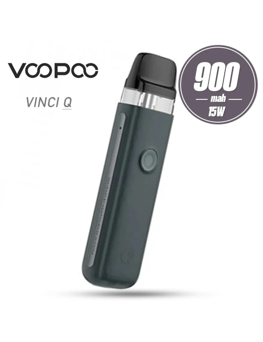 Voopoo Vinci Q Pod Kit 900mah - компактна Pod система із вбудованим акумулятором середньої ємності, варіативною активацією та працює зі змінними картриджами із серії Vinci. Pod система упакована в легкий, але міцний двошаровий корпус із термостійких полімерів. Лицьова сторона має круглу кнопку активації з вбудованим індикатором. З обох боків розподілили дві маленькі перфорації, які відповідають за забір повітря. Окрім того, на одному з торців розмістили USB-порт. Активація пристрою здійснюється як після натискання кнопки, так і безпосередньо при затягуванні. Мінімалістична плата має необхідну систему безпеки, а також автоматичну оптимізацію потужності під опір випарника в межах від 11 до 15 Ватів. За живлення відповідає вбудований акумулятор ємністю 900 мАг.Комплектний картридж з інтегрованим випарником сітки, опором 1.2 Ом, має верхню заправку. Voopoo Vinci Q Pod сумісний з картриджами від Vinci Pod, Drag Nano 2 Pod та Vinci Royal Edition Pod. Обсяг резервуара не змінився і, як і раніше, становить 2мл.