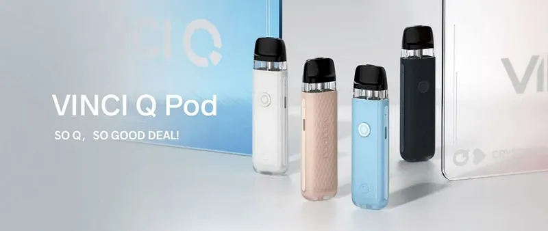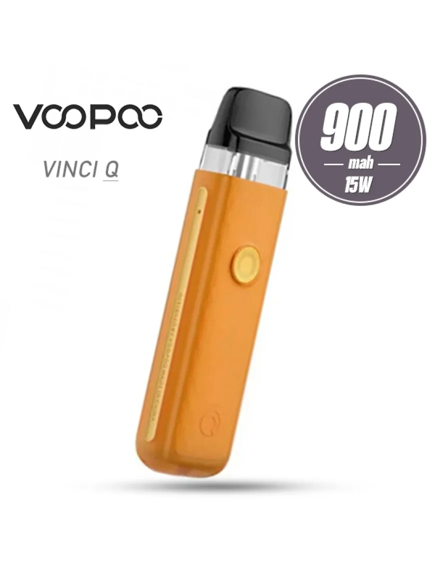 Voopoo Vinci Q Pod Kit 900mah - компактна Pod система із вбудованим акумулятором середньої ємності, варіативною активацією та працює зі змінними картриджами із серії Vinci. Pod система упакована в легкий, але міцний двошаровий корпус із термостійких полімерів. Лицьова сторона має круглу кнопку активації з вбудованим індикатором. З обох боків розподілили дві маленькі перфорації, які відповідають за забір повітря. Окрім того, на одному з торців розмістили USB-порт. Активація пристрою здійснюється як після натискання кнопки, так і безпосередньо при затягуванні. Мінімалістична плата має необхідну систему безпеки, а також автоматичну оптимізацію потужності під опір випарника в межах від 11 до 15 Ватів. За живлення відповідає вбудований акумулятор ємністю 900 мАг.Комплектний картридж з інтегрованим випарником сітки, опором 1.2 Ом, має верхню заправку. Voopoo Vinci Q Pod сумісний з картриджами від Vinci Pod, Drag Nano 2 Pod та Vinci Royal Edition Pod. Обсяг резервуара не змінився і, як і раніше, становить 2мл.