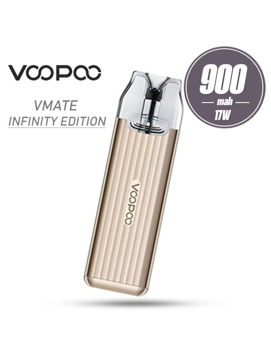 VooPoo VMATE Infinity Edition 900 мАч - Компактная POD система, оснащенная емким аккумулятором, рассчитанная на установку сменных картриджей серий VMATE и V.THRU. Основное отличие Voopoo VMATE Infinity Edition POD kit от предыдущей версии – это оформление девайса, так как форм-фактор корпуса решили не менять. Внешний вид устройства стал немного агрессивнее и более привлекательным – появились вертикальные полосы и оригинальные цвета. Размеры POD системы достаточно скромные – 95.5 х 28.5 х 15 мм, причем вес, за счет использования при производстве алюминиевого сплава, небольшой. Питание VMATE Infinity Edition обеспечивается встроенным аккумулятором емкостью 900 мАч, который заряжается через разъем USB Type-C, током 1А. Устройство работает под управлением чипсета GENE.AI, благодаря которому выходная мощность составляет около 17 Ватт. Активация девайса производится только при затяжке (никаких элементов управления нет). Для того чтобы контролировать уровень зарядки АКБ, на боковой грани имеется светодиодный индикатор, выполненный в виде знака бесконечности. Pod система комплектуется представленным ранее картриджем Voopoo VMATE V2 со встроенным испарителем на сетке, сопротивлением 0.7 Ом. Картриджи этой серии полностью совместимы с устройствами серий VMATE и V.Thru. Испарители внутри картриджей изготовлены по технологии ITO, призванной улучшить вкусопередачу путем более ровного распределния тепла по сетке. Настройки интенсивности затяжек, увы, по-прежнему нет, а обдувы расположены по бокам. Для того чтобы заправить картридж, его необходимо вынуть из батарейного блока, открыть на боковой поверхности силиконовую заглушку и залить 3 мл жидкости.