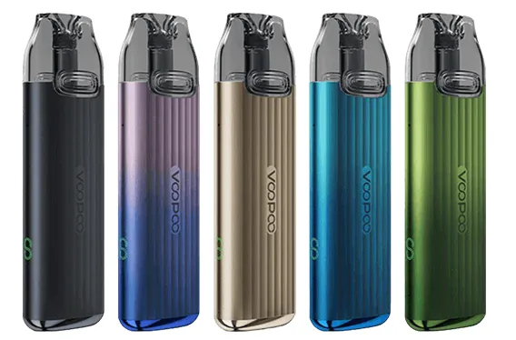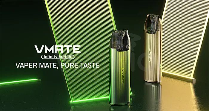 VooPoo VMATE Infinity Edition 900 мАг - Компактна POD система, оснащена ємним акумулятором, розрахована на встановлення змінних картриджів серій VMATE і V.THRU. Основна відмінність Voopoo VMATE Infinity Edition POD kit від попередньої версії - це оформлення девайса, оскільки форм-фактор корпусу вирішили не змінювати. Зовнішній вигляд пристрою став трохи агресивнішим і більш привабливим - з'явилися вертикальні смуги і оригінальні кольори. Розміри POD системи досить скромні - 95.5 х 28.5 х 15 мм, причому вага, завдяки використанню у виробництві алюмінієвого сплаву, невелика. Живлення VMATE Infinity Edition забезпечується вбудованим акумулятором ємністю 900 мАг, який заряджається через роз'єм USB Type-C, струмом 1А. Пристрій працює під управлінням чипсета GENE.AI, завдяки якому вихідна потужність становить близько 17 Ватт. Активація девайса відбувається тільки під час затягування (ніяких елементів управління немає). Для того щоб контролювати рівень зарядки АКБ, на бічній грані є світлодіодний індикатор, виконаний у вигляді знака нескінченності. Pod система комплектується представленим раніше картриджем Voopoo VMATE V2 з вбудованим випаровувачем на сітці, опором 0.7 Ом. Картриджі цієї серії повністю сумісні з пристроями серій VMATE і V.Thru. Випаровувачі всередині картриджів виготовлені за технологією ITO, покликаною поліпшити передачу смаку шляхом більш рівного розподілу тепла по сітці. Налаштування інтенсивності затяжок, на жаль, як і раніше, немає, а обдуви розташовані з боків. Для того щоб заправити картридж, його необхідно вийняти з батарейного блоку, відкрити на бічній поверхні силіконову заглушку і залити 3 мл рідини.