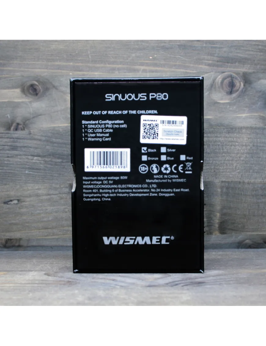 Wismec SINUOUS P80 – стильний дизайнерський мод, виконаний у строгому корпусі, сталево-сірого кольору. Оснащений одним акумулятором формату 18650, боксмод розвиває максимальну потужність 80 Вт. Мод спроектований так, щоб гарантувати ідеальну зручність власнику – ідеально лежить в руці. Середній рівень потужності дозволяє парити цілий день, не переживаючи про те, що девайс розрядиться.