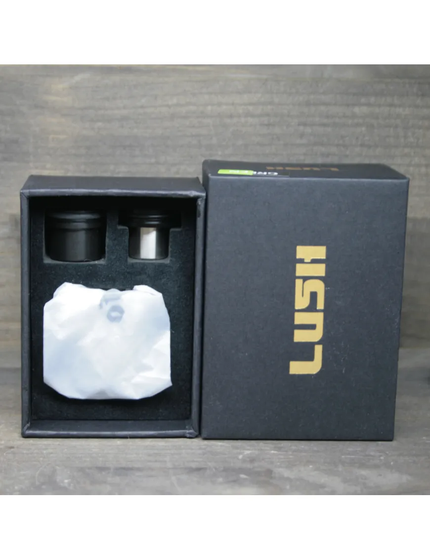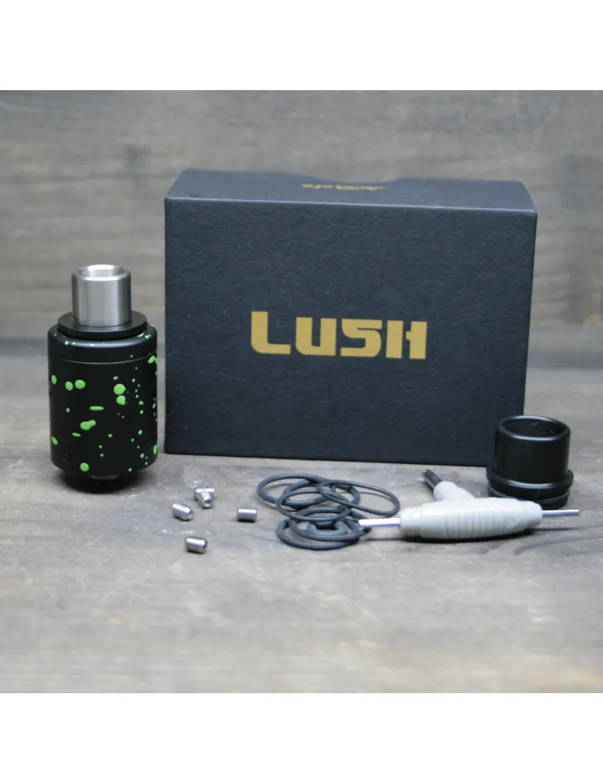 Дрипка Lush RDA представлена в 10 кольорах. Двоколірні варіанти реалізовані у стилі кольорових бризок на основному тлі. Дріпка добре виглядатиме на більшості сучасних модів завдяки діаметру 22 мм. Корпус створюється з нержавіючої сталі і має велику товщину, що не дає дріпці швидко перегріватись при використанні великих та низькоомних намоток. З обох боків пристрою знаходяться по шість отворів для обдування.