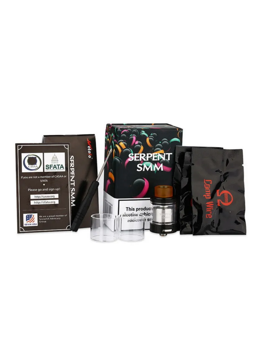 Wotofo Serpent SMM - бакомайзер, що обслуговується від компанії Wotofo, створений у співпраці із західними оглядачами Suck My Mod. Бак зовні нагадує попередню розробку компанії Wotofo, The Troll RTA, але при цьому використовує основи конструктиву бази, закладені Serpent від тієї ж Wotofo.