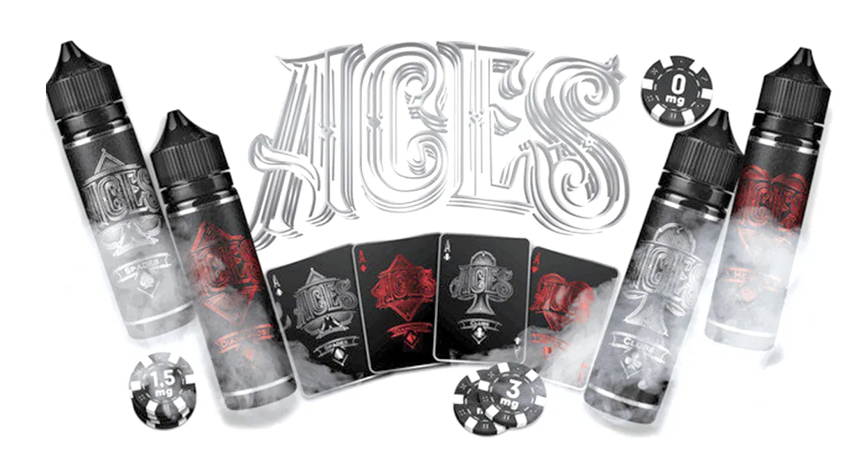 Виробники ACES вийшли на професійне виробництво восени 2018 року. Перебравши найбільш вдалі комбінації ароматизаторів, старанно відібрали чотири смаки. А цікавий та незвичайний дизайн упаковки став візитною карткою рідин ACES. Усередині кожної упаковки є вкладиш, що дозволяє постійним клієнтам зібрати свою колоду і взяти участь у картковій грі. Неймовірні поєднання в плашечці в 60мл не залишить тебе байдужим, різноманіття смаків та крутий дизайн пляшечок. Все що тобі залишилось купити рідину для вейпу Aces на почати насолоджуватись смаками які для тебе розробили українські виробники. Нарешті ти можеш зарядитись позитивними емоціями та вейпити з задоволенням.