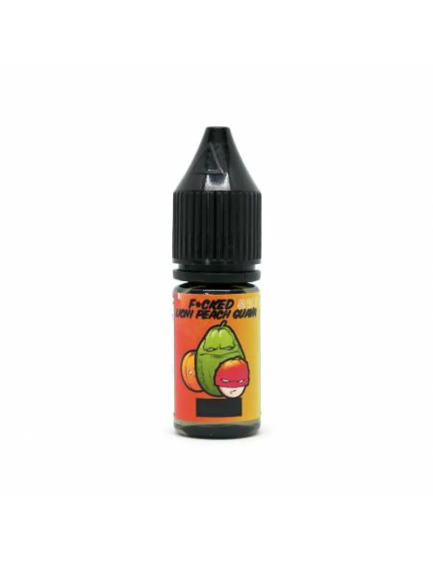 Рідина для електронних сигарет Fvcked Lab Salt Lichi Peach Guava 10 мл 50 мг має у складі USP гліцерин, органічний нікотин, ароматизатор, пропіленгліколь.