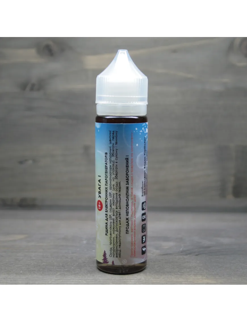 У складі гліцерин USP, пропіленгліколь USP, ароматизатори натуральні, органічний нікотин у кількості 3 мг. Сировину доставляють прямо з Європи. Співвідношення 70 до 30 забезпечує м'яку та приємну пару. Наявність нікотину може спричинити залежність.