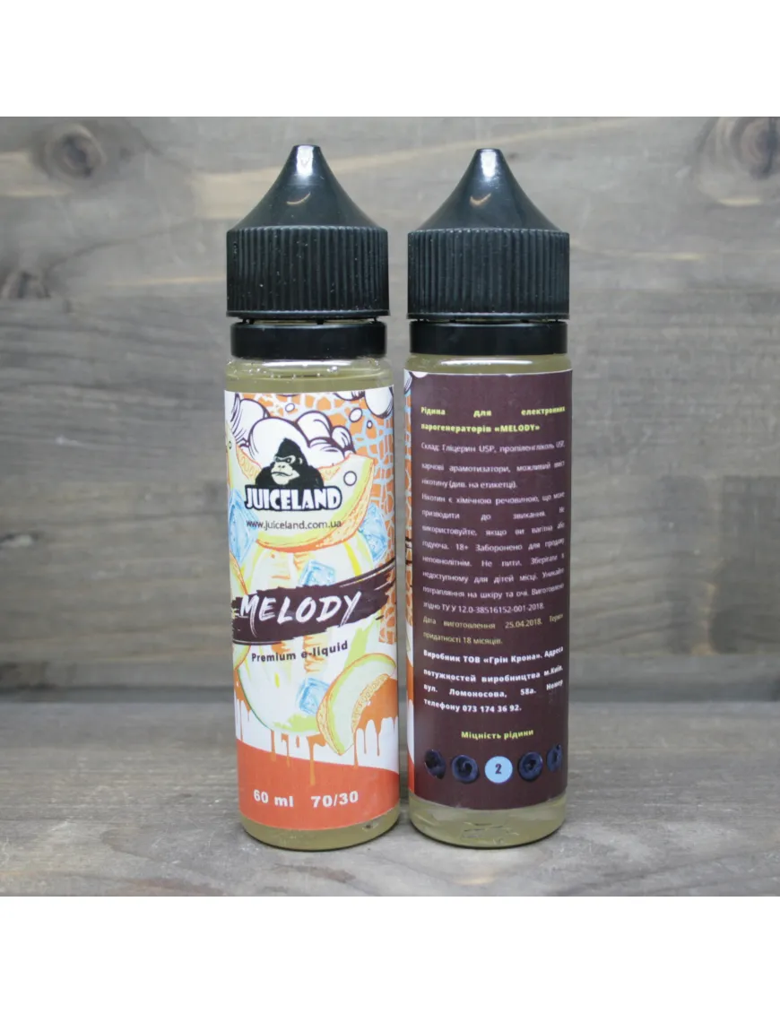 Солодка медова диня неодмінно завоює серце найвибагливішого вейпера. Неповторний смак Juiceland - Melody зробить ваш день приємним, а додана крига освіжить ваш розум і додасть сил для досягнення мети. Спробувавши раз, Ви ніколи не забудете освіжаючий смак солодкої дині. Прекрасний вибір для поведінкового ширяння, особливо в спекотний сезон року.