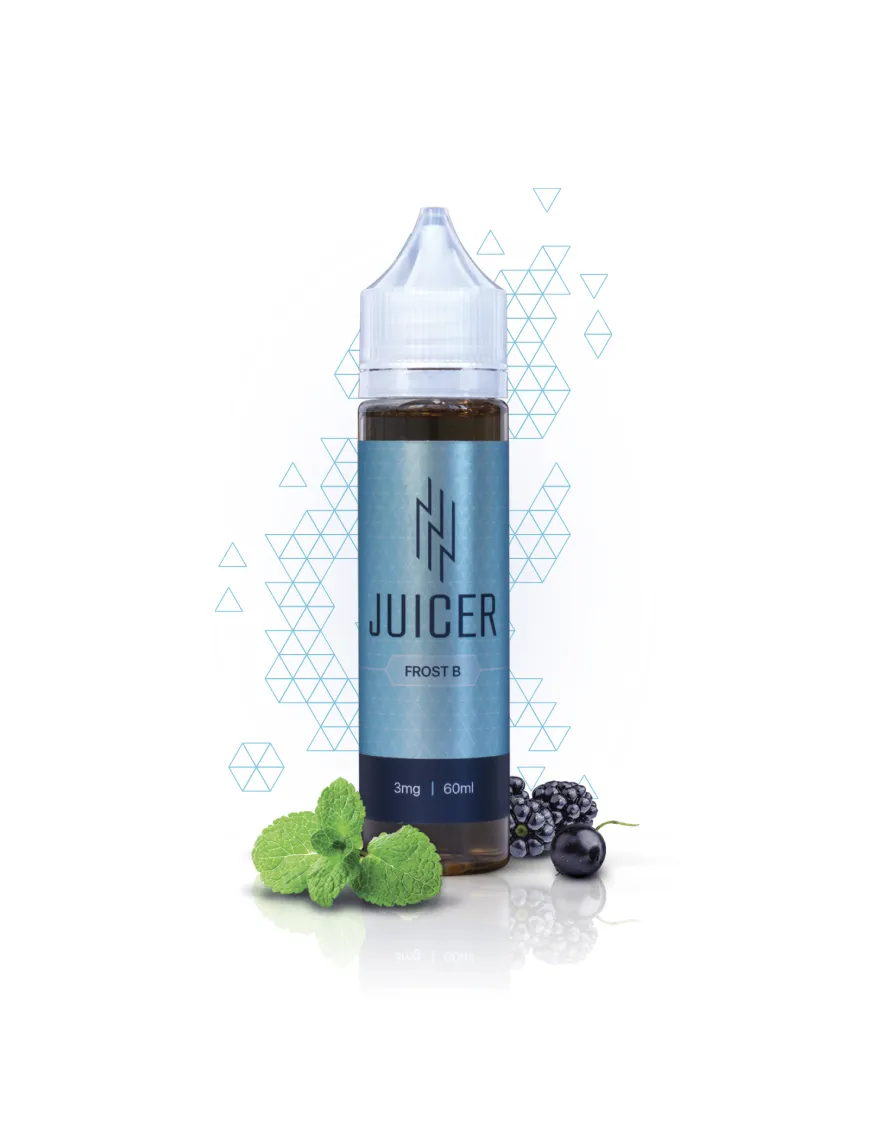 Рідина для ширяння від Juicer . Frost B – це неймовірний дует садових ягід та прохолодної м'яти. Цей смак сподобається всім любителям охолоджуючих рідин, ідеально підійде для ширяння в будь-який час доби. Рідина буває у трьох варіаціях нікотину: 0; 1,5 та 3 мг.
