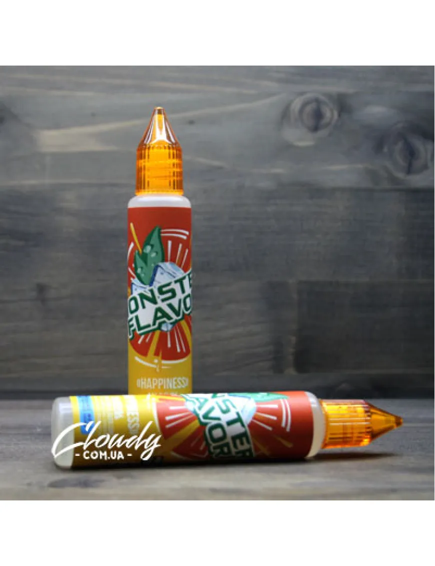 Свіжий, що тонізує і бадьорить енергією на цілий день, що наситить твоє літо радістю і насолодою. Щасливий смак Monster Flavor, апельсиновий фреш з часточками високогірного і добірного середзерноморського лайма. Яскравий смак цього літа, що не залишить байдужими навіть любителів випічки та десертних смаків. Happiness дуже легко ідентифікувати серед такої насиченої лінійки, до створення кожного смаку монстри підходять індивідуально, тому промені апельсинового сонця миттєво зупинять твій погляд саме на цьому флаконі преміальної української рідини. Апельсин із лаймом, яскравий фруктовий танець твого настрою.