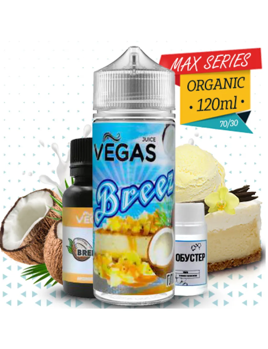 Breeze - незабутній смак для любителів солодощів, який поєднав у собі екзотику кокосового коктейлю, делікатну нотку м'якого ванільного крему та ніжність чізкейку!