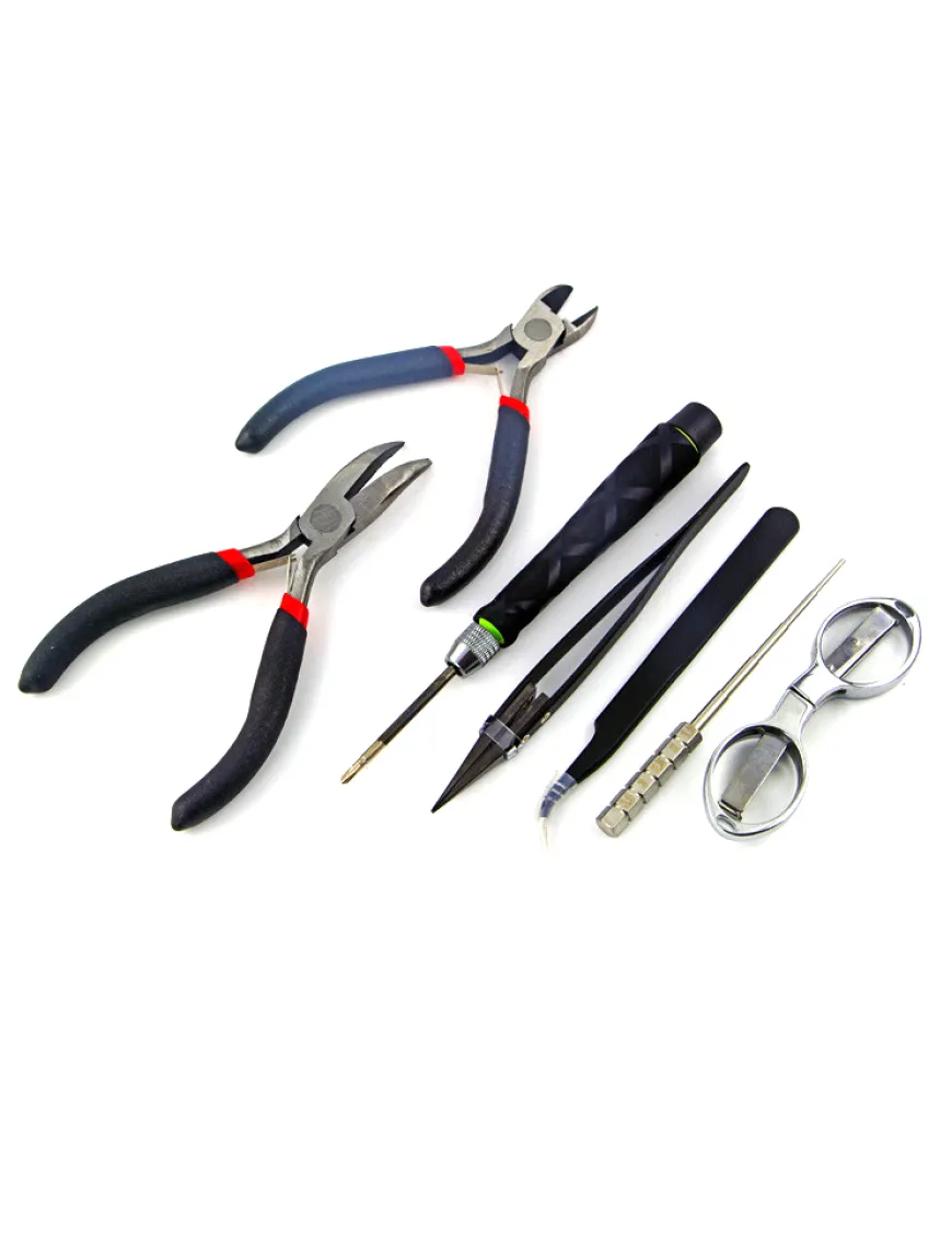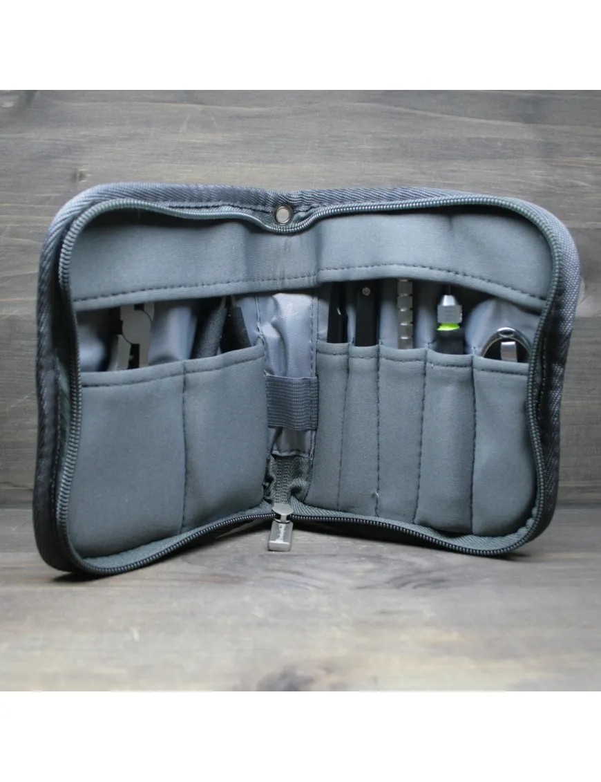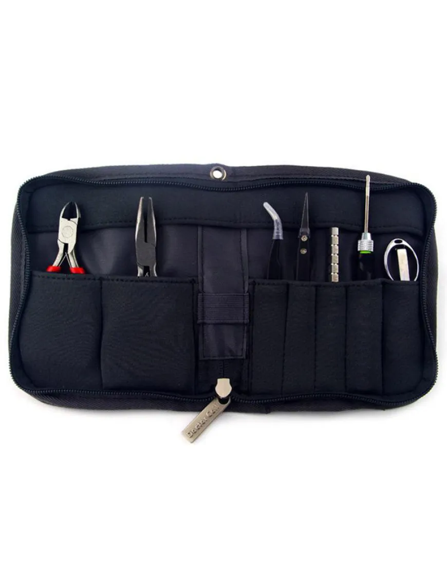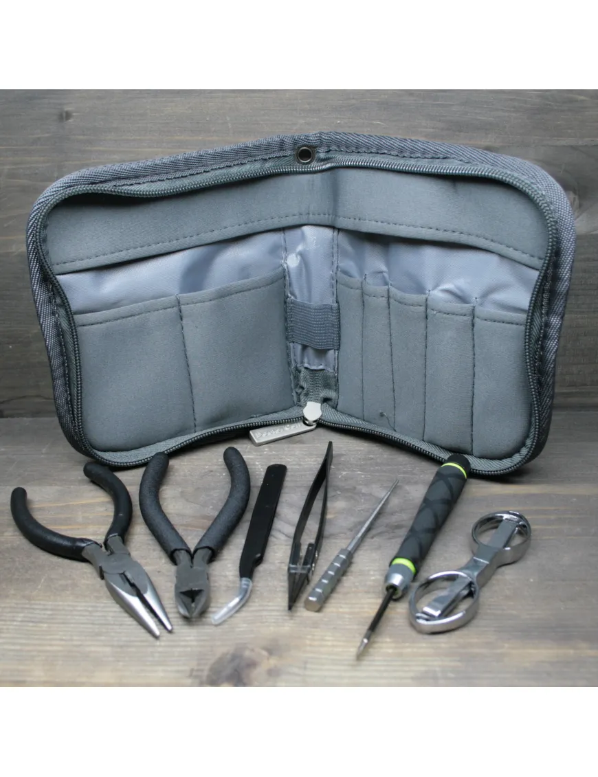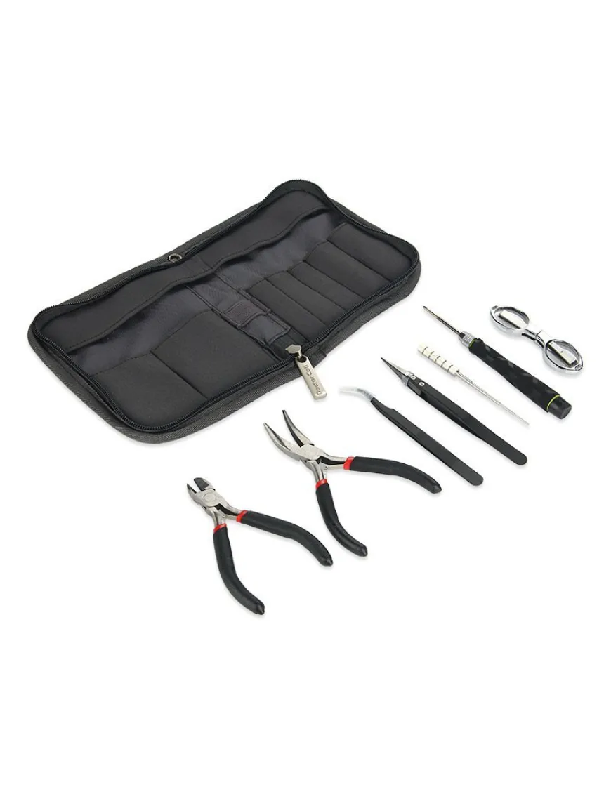 Компактний набір інструментів, часом необхідних для справжнього вейпера. Немає можливості зайти у вейп шоп за намотуванням? За допомогою цього набору, швидка та ефективна намотування спіралей та заміна вати, забезпечена. У футлярі на застібці блискавки зручно розташовані інструменти: