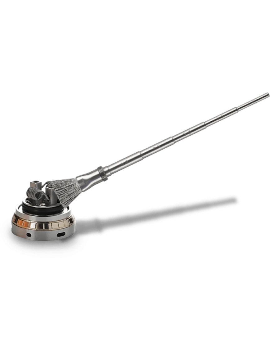 Vape Brush складається з оправки з різними діаметрами: 2/2,5/3/3,5/4 мм та металевого пензлика (два в комплекті). Ви зможете регулювати встановлену спіраль під час пропалювання не порушуючи її структуру, а при необхідності почистити намотування від нагару металевим пензликом.