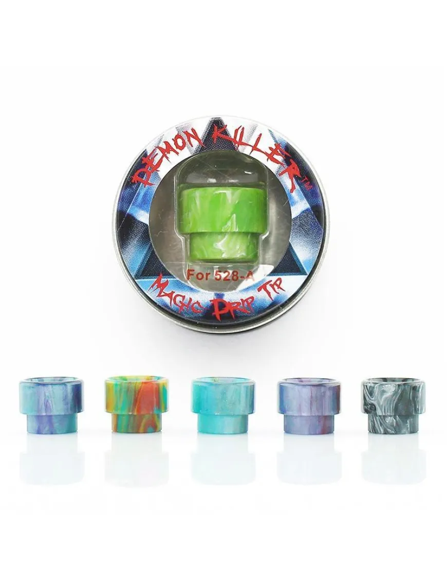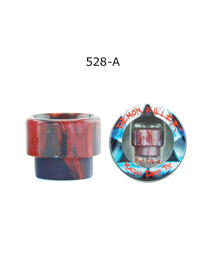 Demon Killer 528-A виконаний з полімерної смоли (Resin), що надає йому яскравого зовнішнього вигляду і унікальності - малюнок полімерної смоли практично неможливо повторити і кожен мундштук в партії буде трохи відрізнятися від сусіда. Мундштук виконаний за стандартом 810, що набрав популярності, і чудово підійде, щоб урізноманітнити зовнішній вигляд атомайзерів Goon, Kennedy, багатьох продуктів Wotofo, Vandy Vape і багатьох інших атомайзерів.