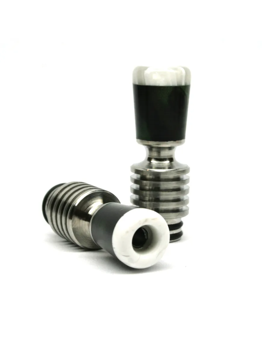 Компактний та зручний дрип-тип (мундштук) для атомайзерів до електронних сигарет з 510-м з'єднанням з комбінованими вставками з матеріалу акрилу та основою з титану. Має привабливе, різнокольорове та унікальне для кожної одиниці оформлення. Завдяки двом орінгам, щільно сидить у кліромайзері. Підходить до більшості сучасних моделей атомайзерів.