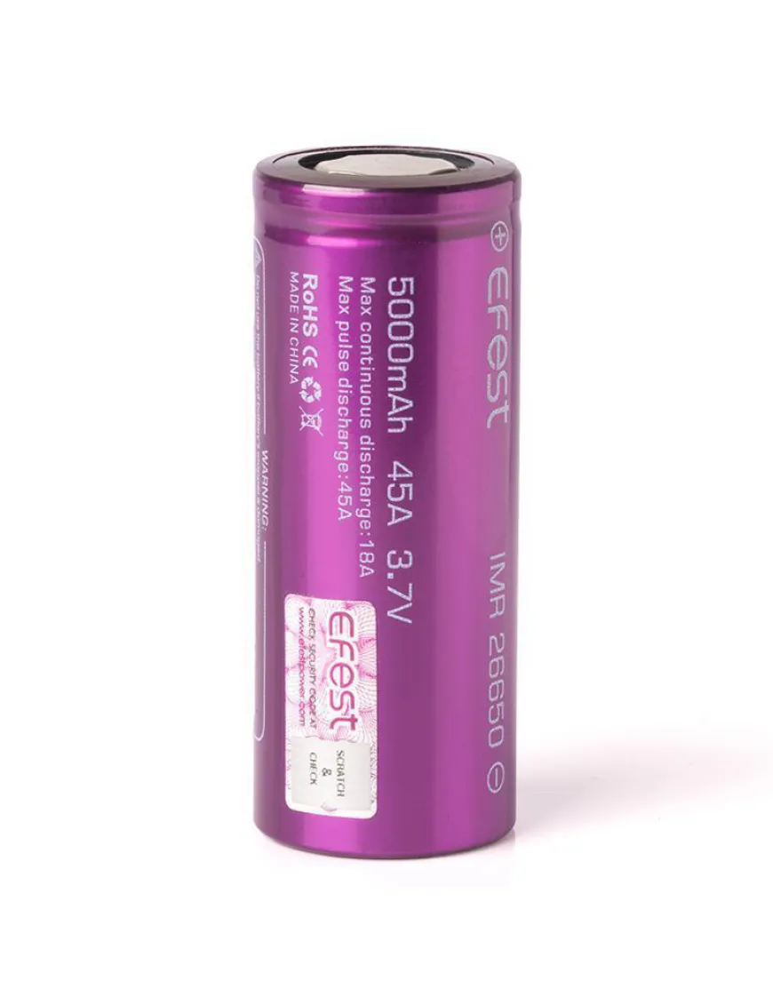 Efest IMR 26650 5000 mAh (45A) - високострумовий акумулятор, що поєднує в собі високий рівень струмовіддачі 45А з високою ємністю 5000 мАг.