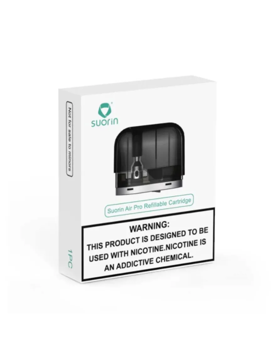 Air Pro Cartridge 1.0 Ом це змінний картридж для системи Suorin Air Pro 930 мАг. Картридж Suorin Air Pro 1.0 Ом виконаний з тонованого пластику та вміщує 4,9 мл рідини, а поповнюється вона через отвір на денці, закритий силіконовою заглушкою. Опір невитягуваного випарника становить 1,0 Ом, а гарантований термін роботи без втрати якості, як запевняє виробник, не менше 6 заправок або 30 мл. Фіксація картриджа у посадковому гнізді здійснюється за допомогою магнітів. У коробці знаходиться 1шт картриджів, продається поштучно, тобто ціна вказана за 1шт.