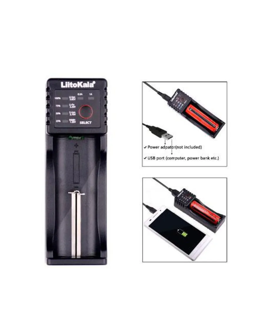 LiitoKala Lii-100 - універсальний інтелектуальний зарядний пристрій, сумісний практично з усіма циліндричними акумуляторами, що усуває необхідність використання декількох зарядних пристроїв. Lii-100 автоматично розпізнає літій-іонні, нікель-металгідридні та нікель-кадмієві акумулятори, заряджає літій-фосфатні (LiFePO4) акумулятори, а також Li-ION акумулятори з кінцевою напругою 4,35в.