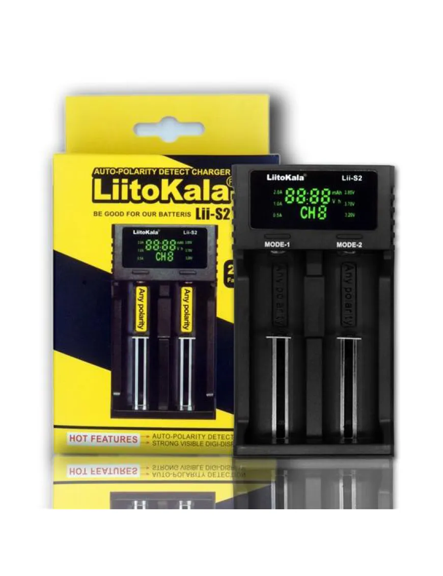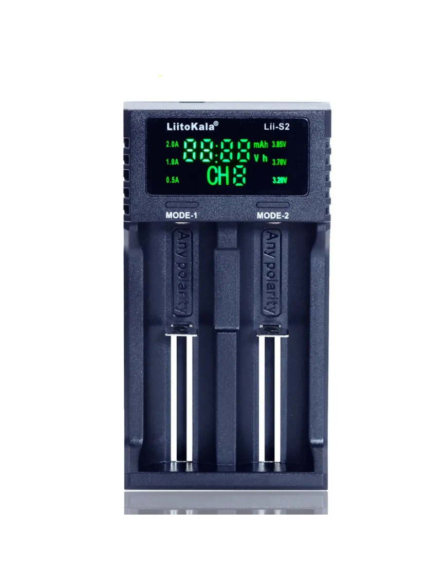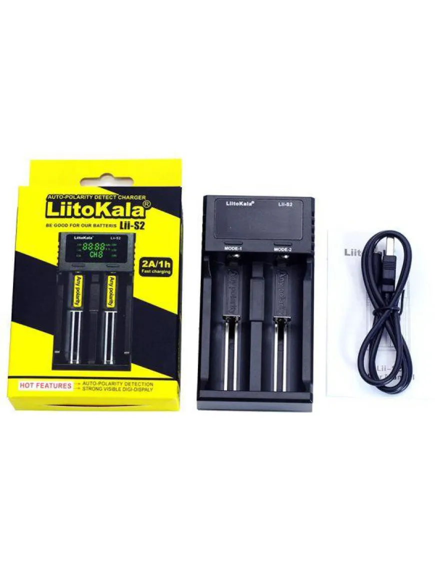Liitokala Lii-S2 - багатофункціональний зарядний пристрій із двома слотами. Забезпечує заряд нікель-метал-гідридних і літій-іонних, а також LiFePO4 акумуляторів. Струм заряду 0.5А, 1.0А або 2,0А (для одного акумулятора). Автоматичне визначення NiMh та LiIon акумуляторів. Вибір LiFePO4-3,2V та LiIon-4,35V з підвищеною напругою здійснюється вручну. Будьте уважні при виборі струму, заряджайте малопотужні акумулятори відповідним струмом, заряд до 4,35В використовуйте тільки для відповідних акумуляторів. Усі типорозміри акумуляторів, що підтримуються, встановлюються без перехідників, без дотримання полярності.