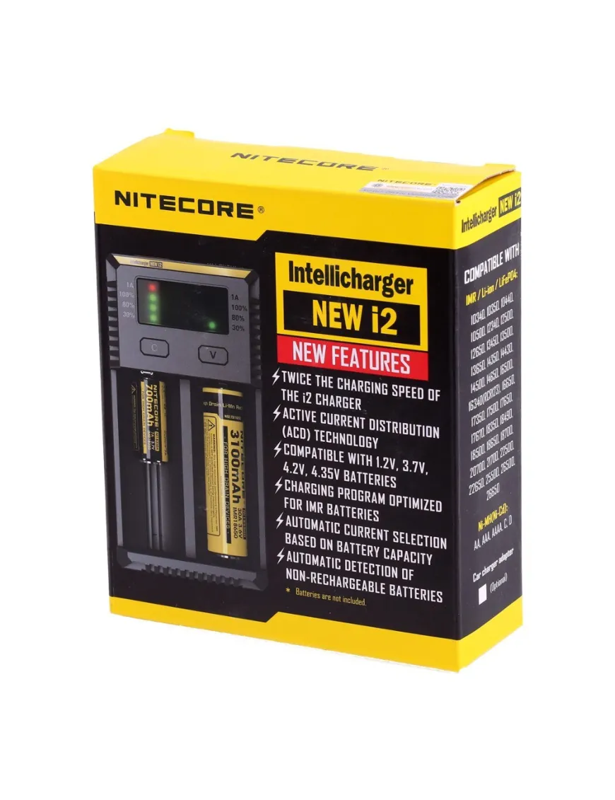 Nitecore Intellicharger NEW i2 – оновлена версія відомого зарядного пристрою Nitecore i2 v2014. Корпорація Sysmax (виробник Nitecore) йде в ногу із сучасними вимогами, які користувачі пред'являють до зарядних пристроїв. З кожним роком зарядні пристрої Nitecore стають все більш досконалими, а їхня експлуатація зручніша. Тільки в 2014 році зарядний пристрій Nitecore i2 отримав новий вигляд - лише через 2 роки виходить нове, вже третє, покоління даного зарядного пристрою - модель Nitecore Intellicharger NEW i2.