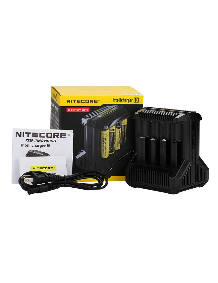 Nitecore Intellicharger i8 – нова модель у лінійці зарядних пристроїв від компанії Nitecore, одного з лідерів у цій індустрії. Зберігаючи весь основний функціонал I-серії зарядників, цього разу розробники запропонували користувачам восьмисототовий зарядний пристрій, так як кількість батарей, що постійно використовуються, зростає і користувачам потрібно все більше і більше акумуляторів, що заряджаються одночасно.