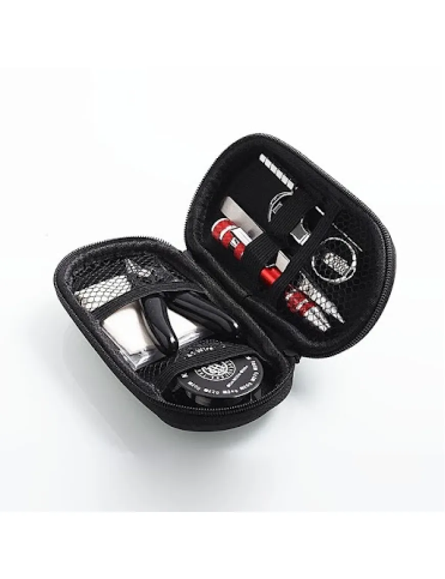 Компактний набір інструментів, часом необхідних для справжнього вейпера. Немає можливості зайти у вейп шоп за намотуванням? За допомогою цього набору, швидка та ефективна намотування спіралей та заміна вати, забезпечена. У футлярі на застібці блискавки зручно розташовані інструменти.