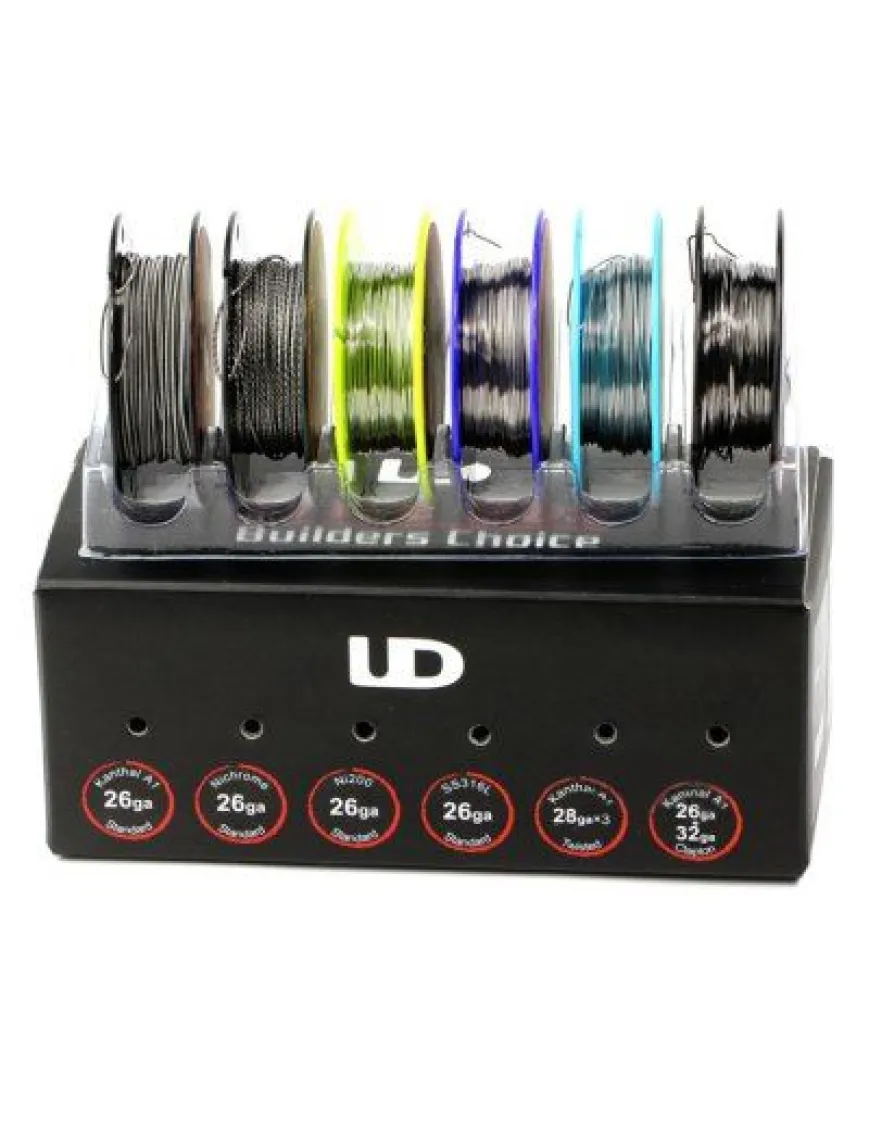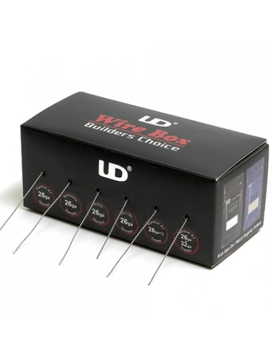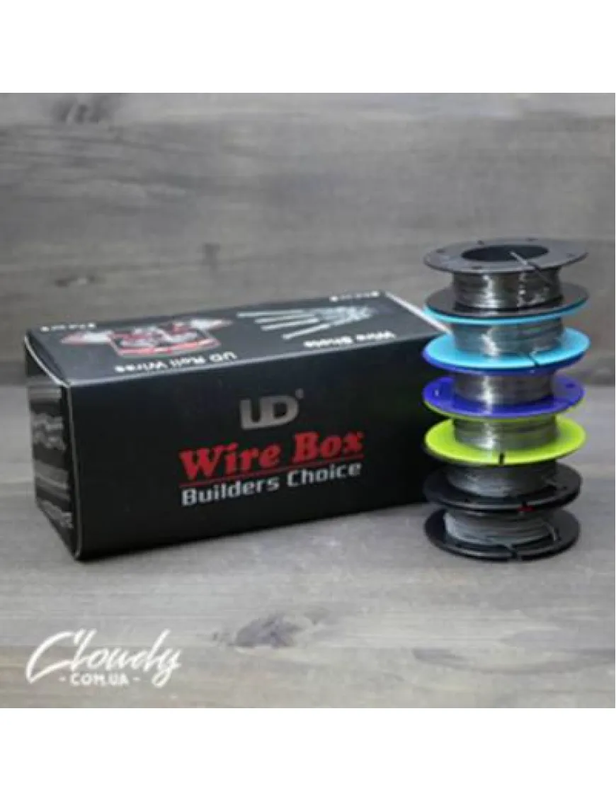 UD Wire Box - це коробка з 6-ма різними дротиками, яка повинна бути присутня на столі у кожного поважаючого себе парильника. Тепер весь дріт, що життєво необхідний для хмар пара знаходиться в одній зручній упаковці. У комплекті Wire Box є найпоширеніші типи дротів, за допомогою яких ви зможете зробити ефективний койл і насолоджуватися яскравішими враженнями від ширяння.