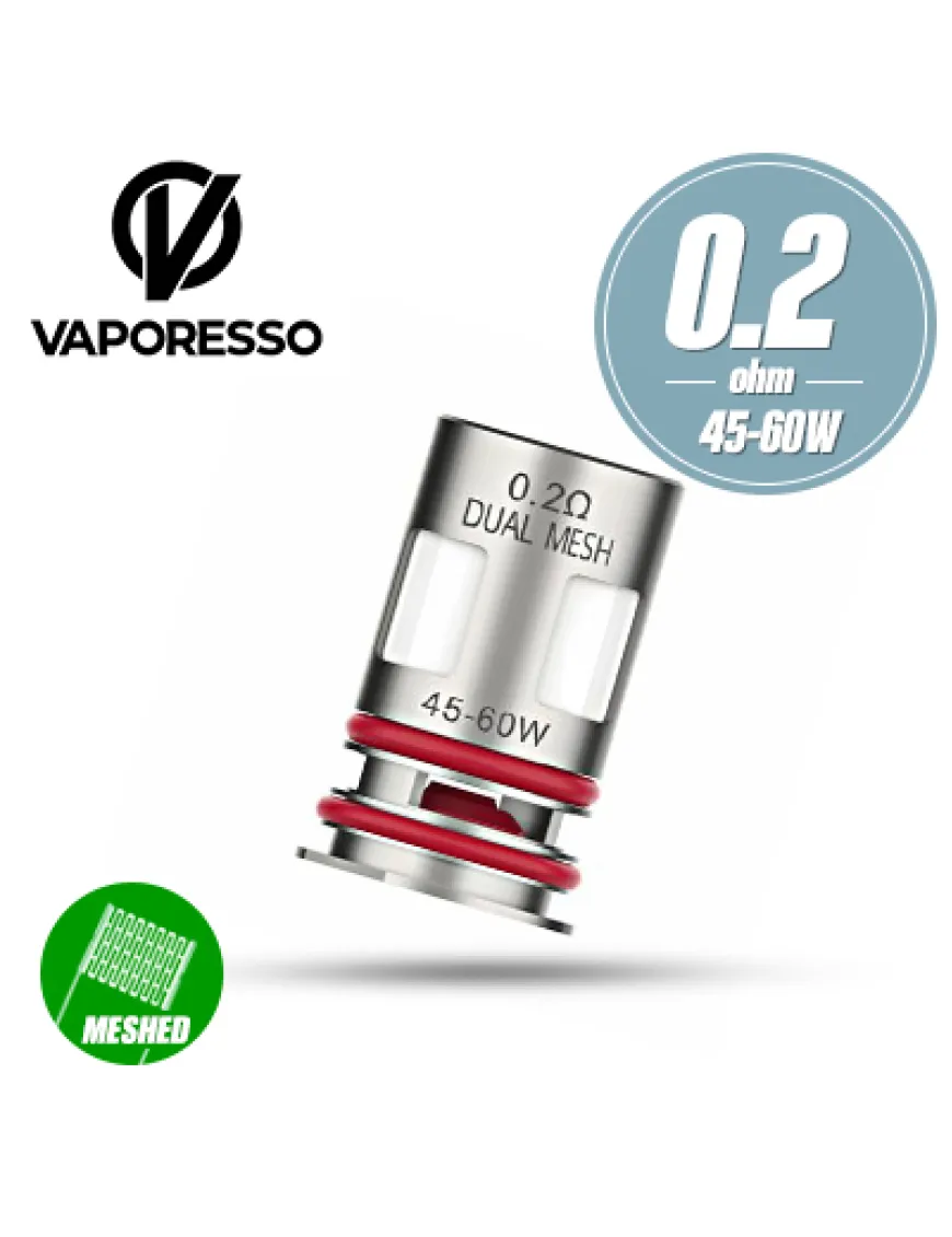 Vaporesso GTX Dual Mesh Coil 0.2 Ом (1шт) – змінний випарник для Pod систем Vaporesso LUXE XR MAX 2, LUXE XR, LUXE X, LUXE X Pro. В якості нагрівача використовується подвійна сітка, опором 0.2 Ом. Має вільну затяжку і хорошу передачу смаку.