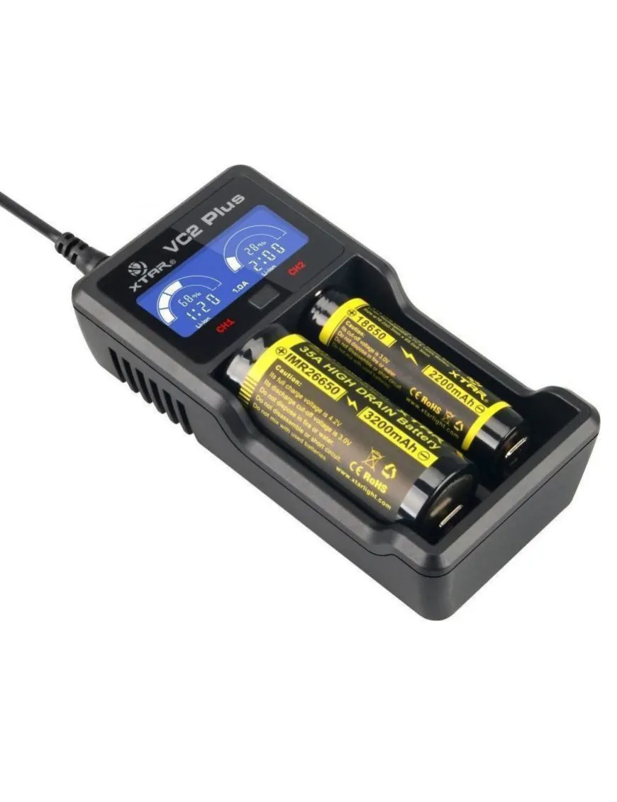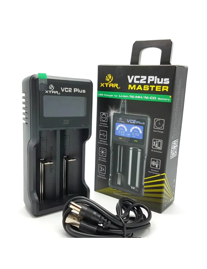 Интеллектуальное зарядное устройство Xtar VC2 Plus Master предназначено для заряда литий‐ионных аккумуляторов типоразмера: 10440, 14500, 14650, 16340, 17670, 18350, 18500, 18650, 18700, 22650, 25500, 26650, 32650 и никель‐металлогидридных/кадмиевых аккумуляторов типоразмера: ААА, АА, C і D. Це перший зарядний пристрій з таймером зворотного відліку, який показує час, необхідний для повного заряду акумулятора.