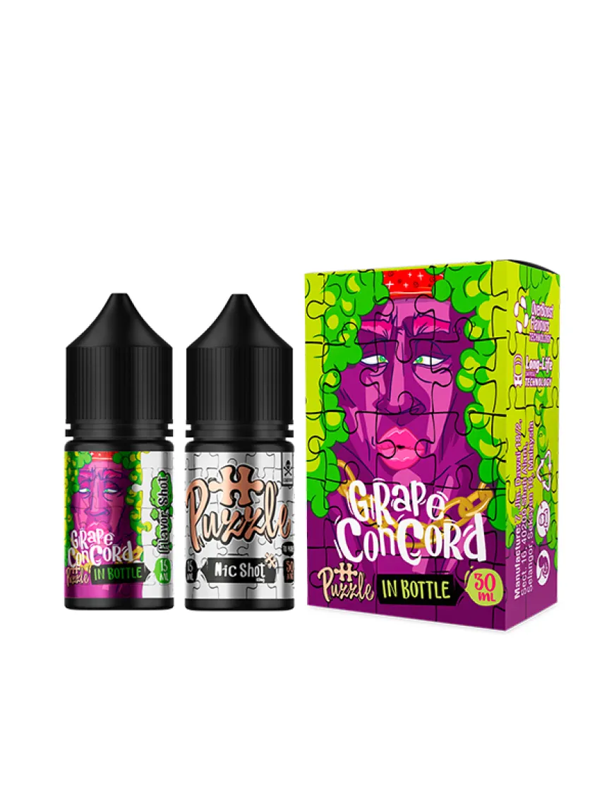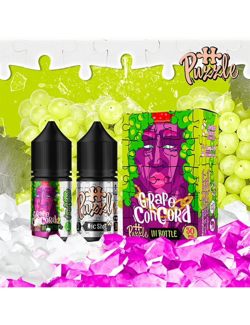 Рідина для електронних сигарет in Bottle - {Puzzle} Grape Concord 30ml 50mg має у складі: