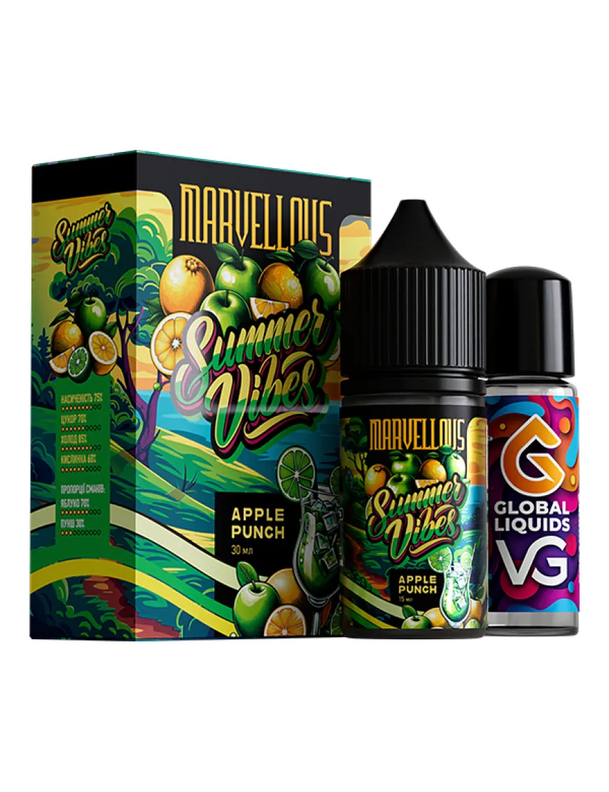 Рідина для електронних сигарет Marvellous - {Summer Vibes} Apple Punch 30ml 50mg має у складі: