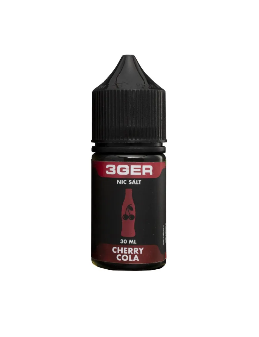 Рідина для електронних сигарет 3Ger Salt - Cherry Cola 25мг 30мл має у складі USP гліцерин, органічний нікотин, ароматизатор, пропіленгліколь.