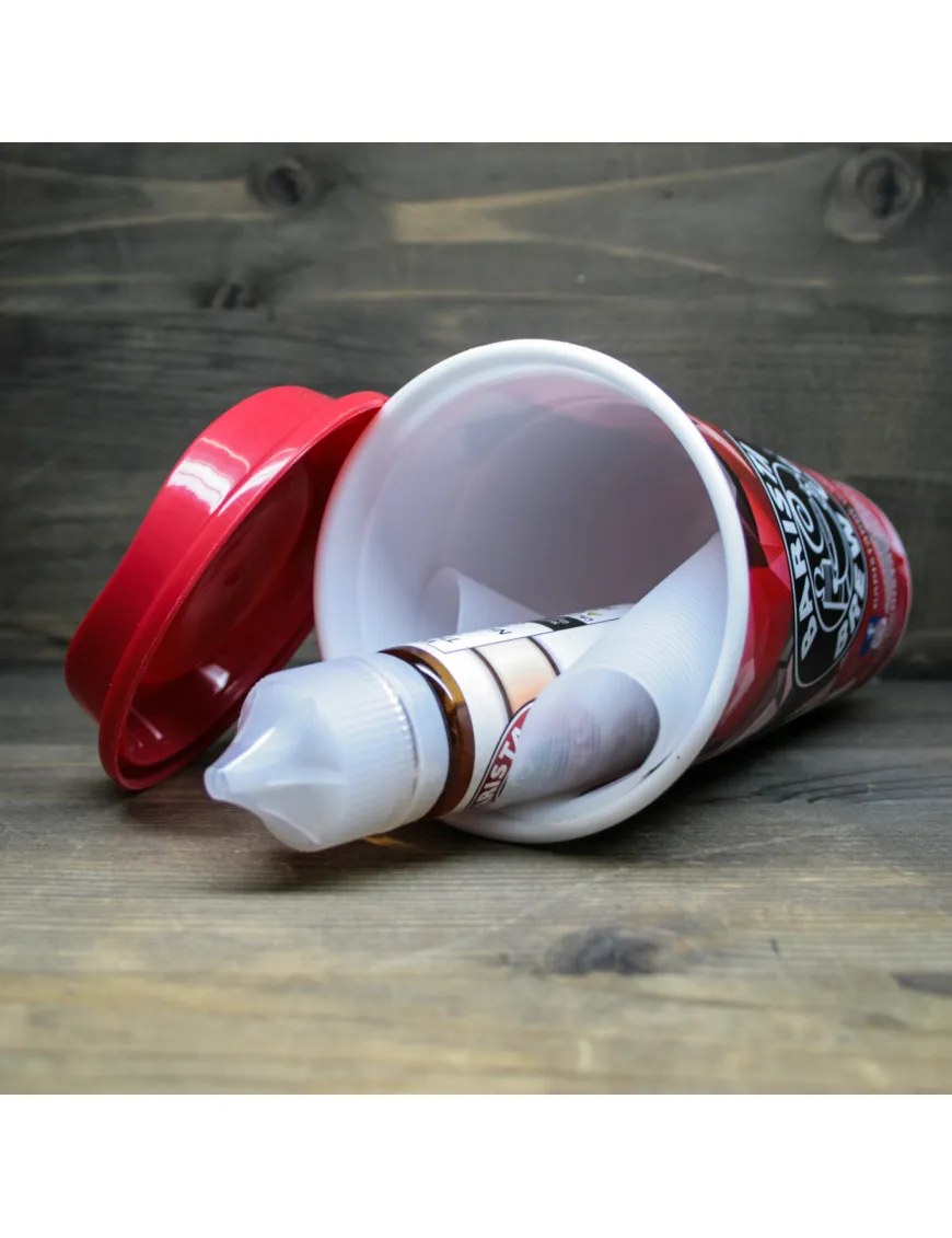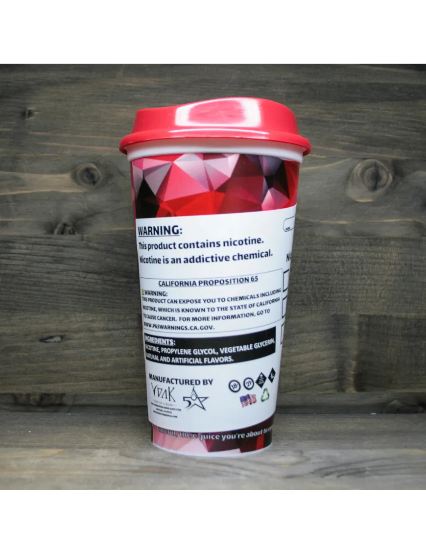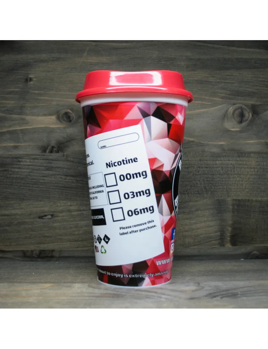 Рідина поставляється в унікальній упаковці – брендована склянка з кришкою. Дизайн склянки та колір кришки залежить від вибраного смаку. Всередині склянки рідина та гумовий чохол із нанесеним логотипом, для комфортного використання склянки з гарячими напоями.
