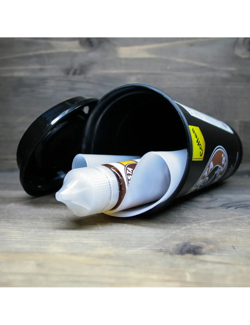 Рідина поставляється в унікальній упаковці – брендована склянка з кришкою. Дизайн склянки та колір кришки залежить від вибраного смаку. Усередині склянки рідина та гумовий чохол із нанесеним логотипом, для комфортного використання склянки з гарячими напоями.