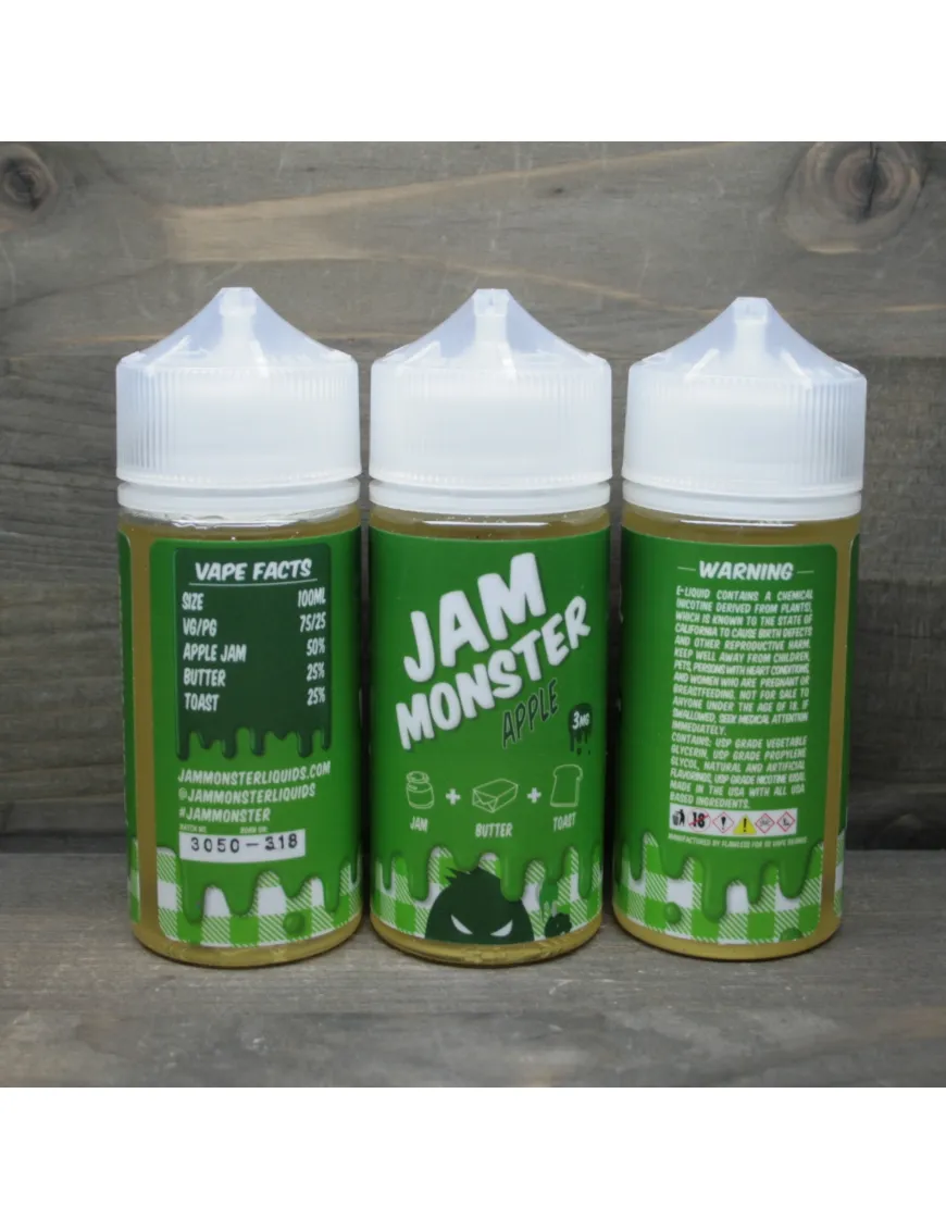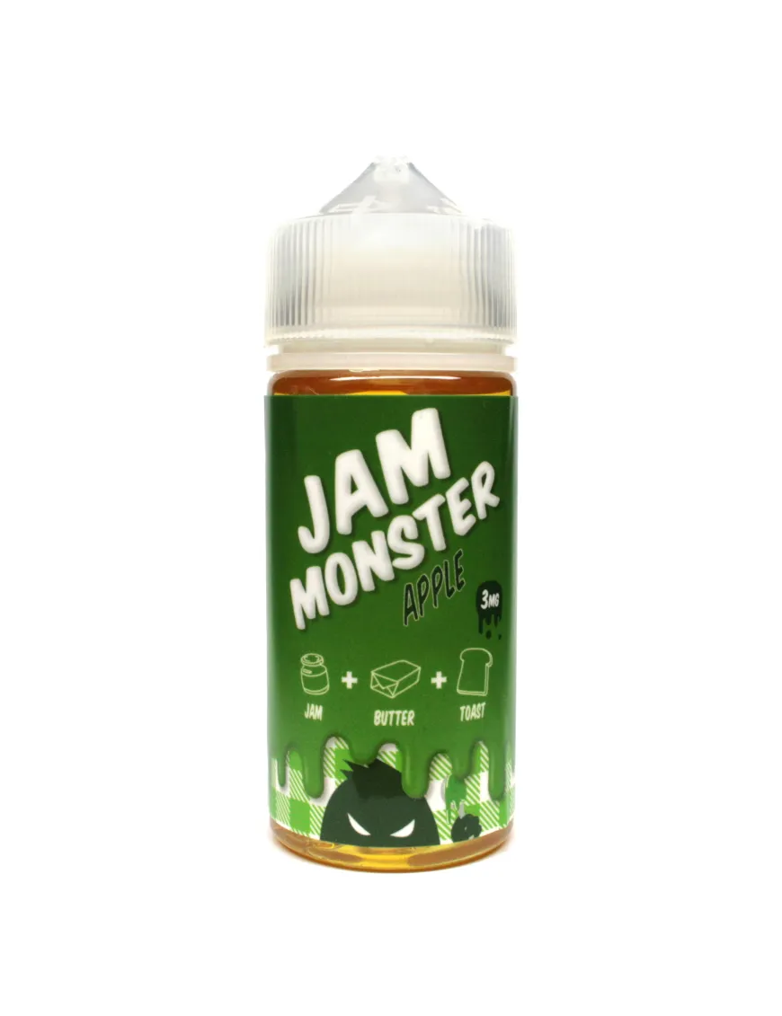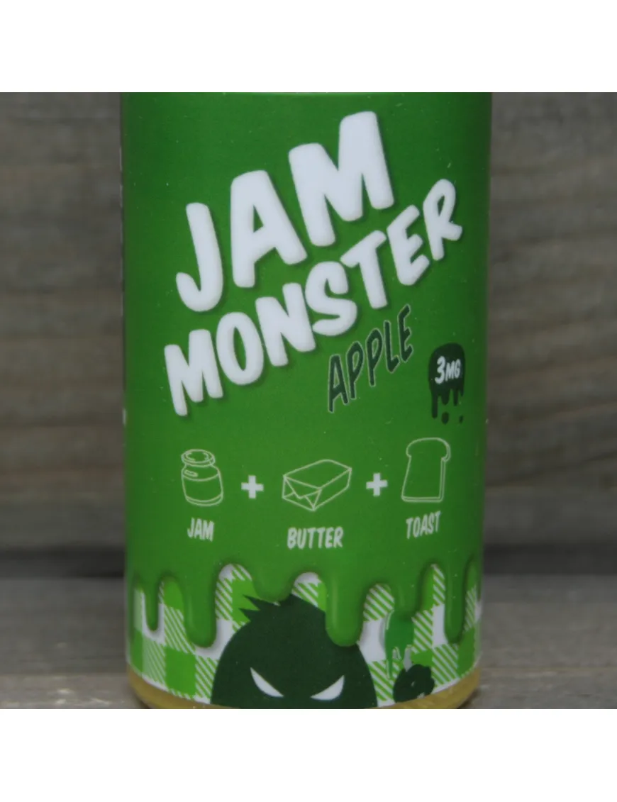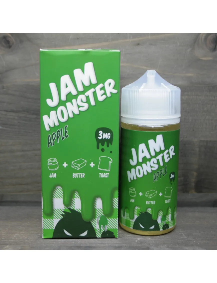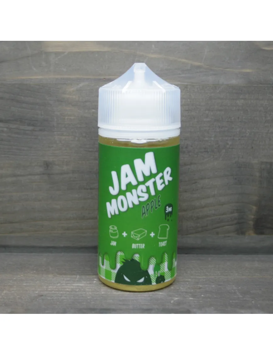 Apple – фруктова магія, смак свіжого тіста та чудовий баланс компонентів від Jam Monster. Рідина виділяється не типовим, але дуже смачним відтінком теплої і кисло-солодкої яблучної м'якоті в цукровому сиропі. Джем із яблук різних сортів покриває на вдиху класичний для виробника смак підсмажених тостів. Комбінація має свіжий, вивірений та по-справжньому преміальний смак. Тонкий штрих в загальну гаму вносить смак олії, що має подібності з ніжним кремом і вихором, що проноситься на видиху. Apple від Jam Monster – еліксир повноцінної насолоди для всіх любителів дорогих десертів зокрема та фруктових міксів загалом.