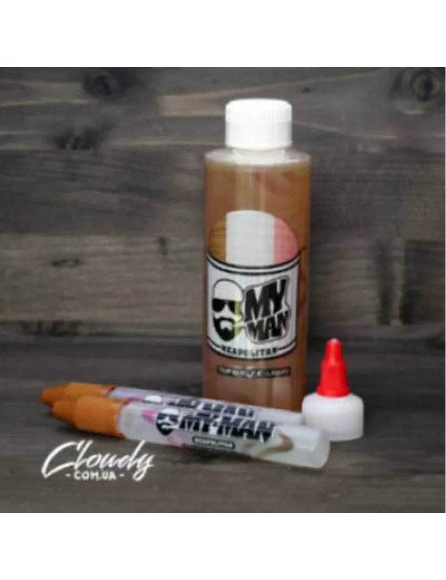 Рідина виготовлена у американських лабораторіях. Сировину ретельно відбирають та тестують, щоб не зіпсувати збалансований смак. Хлопці постаралися підібрати пропорції інгредієнтів, щоб пара не видалася надто солодкою або нудотною. My Man – це рідина, яка має у складі пропіленгліколь, чистий гліцерин, набір натуральних ароматизаторів та органічний нікотин у кількості 3 мг. Рідина налита у стильну баночку об'ємом 180 мл. На кришці є піпетка для наливу у бак. Є захист від першого розтину. Поставляється товар у гарній картонній коробці з двома баночками по 15 мл для зручного транспортування такого більшого об'єму.
