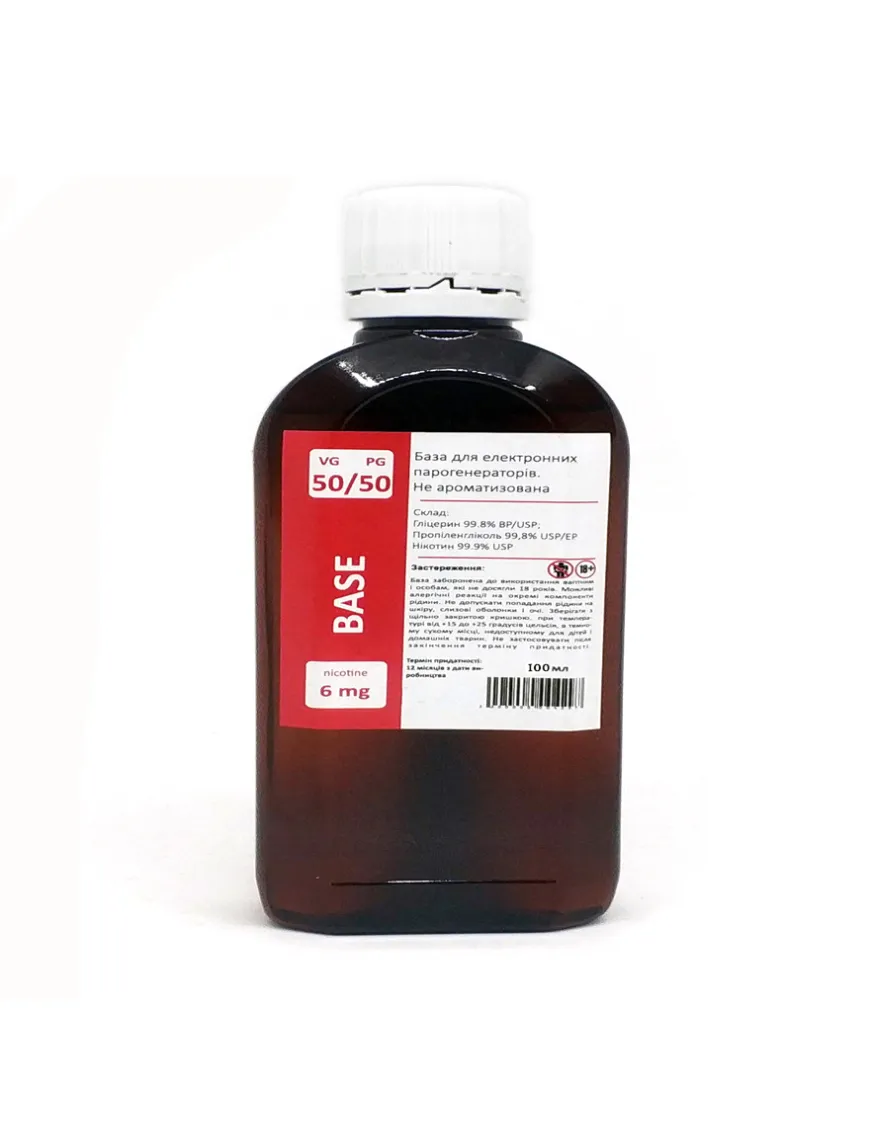 База для самостійного замісу рідини для вейпів. Усі інгредієнти відповідають стандартам якості. У складі дорівнює кількість гліцерину та пропіленгліколю. Кількість нікотину у рідині становить 6мг.