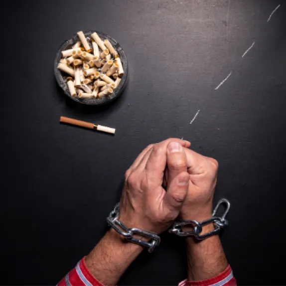 Нікотин є звиканням речовиною, яка в основному надходить через легені при курінні тютюнових виробів. Прагнення продовжувати курити та добре задокументовані труднощі з відмовою від звички виникають через нікотинову залежність. Декілька країн значно підвищили податки на тютюнові в..