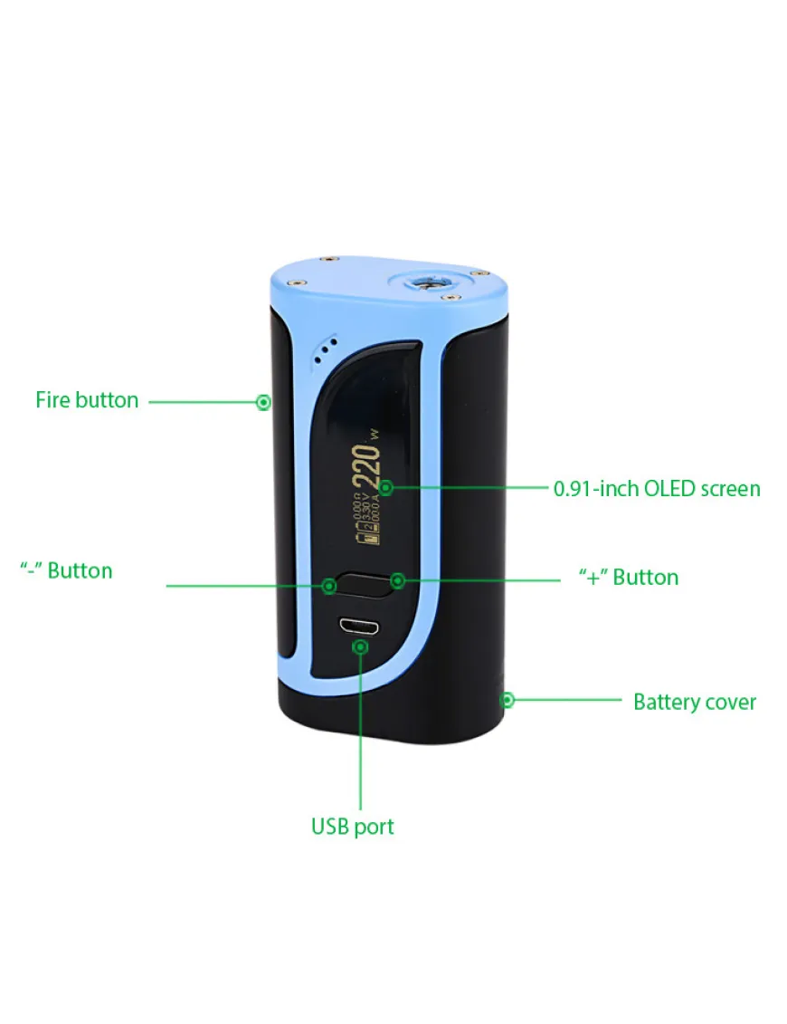 Боксмод iKonn питается от двух аккумуляторов формата 18650. Для их установки необходимо открыть нижнюю откидную крышку. Заряжать боксмод можно быстро через порт на корпусе при силе тока в 2А. Максимальная мощность составляет 220 ватт и этого предостаточно для комфортного парения.