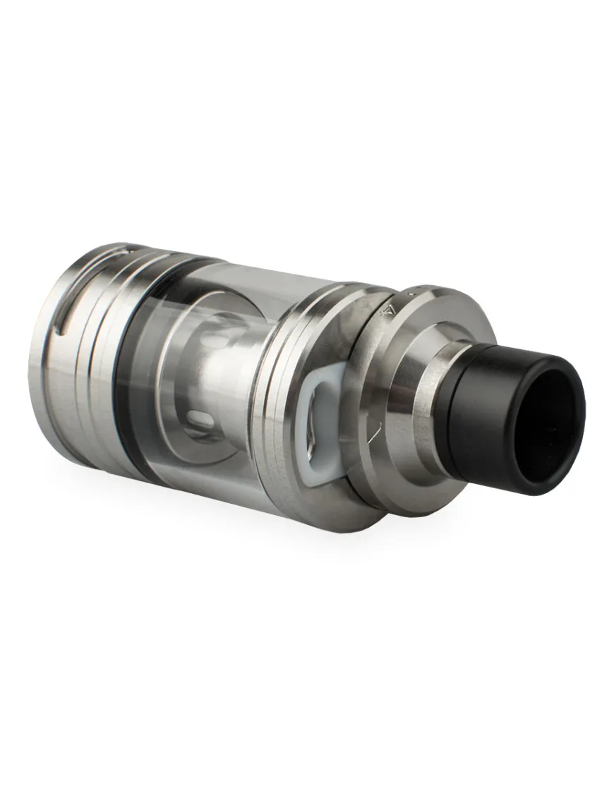 Для повышенной вкусопередачи был сохранен классический 510й дрип-тип, так же обновился метод верхней заправки, теперь крышка удобно отодвигается вбок. Для удобного определения направления открытия на верхней части сделана накатка ввиде указательной стрелочки. Шахта бака, фактически является крепежной системой на резьбе, накручиваясь непосредственно на сам испаритель. Кольцо регулировки обдува обзавелось стопором, для удобной фиксации и что бы избежать лишних прокруток при разборе бака.