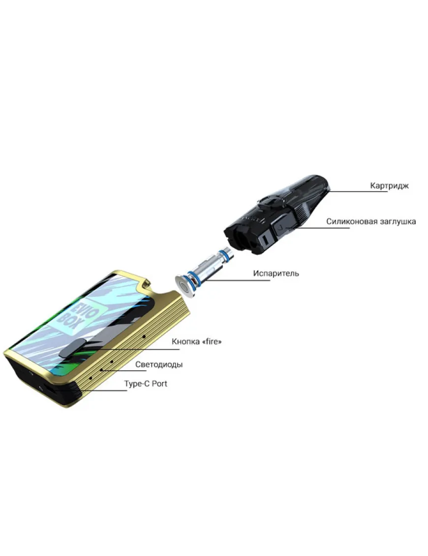 Картридж Evio Box такой же, как и в Evio С Pod, что очень удобно, так как купить его не составит труда. В батарейном блоке картридж удерживается без магнитов – он просто плотно устанавливается в паз.