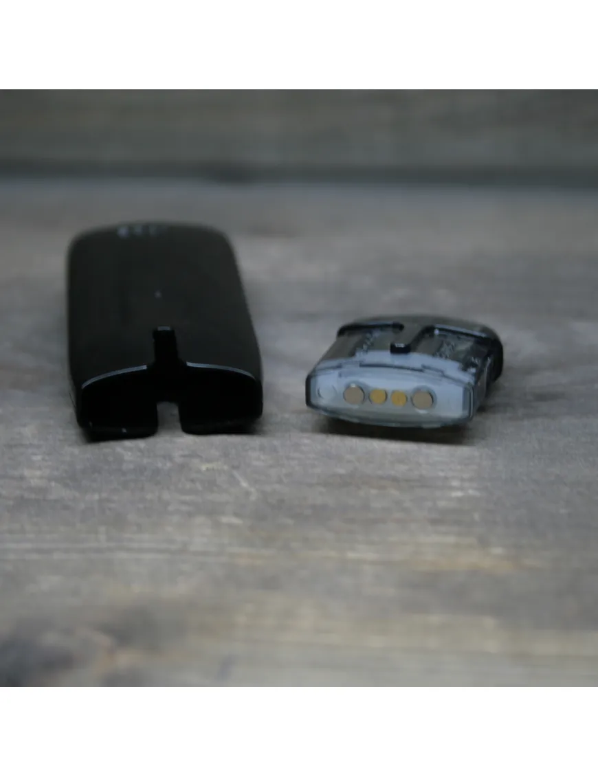 Установка направленная, внутри батарейного блока предусмотрен выступ и такое же углубление в картридже, что защищает от неверной установки. Установленный датчик давления воздуха активирует устройство при затяжке и не требует такая система активации кнопкой.
