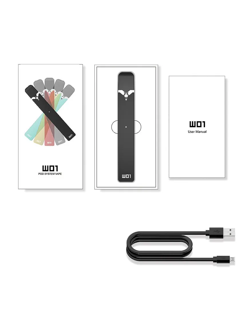 Новинка является прямой альтернативой популярному устройству Juul, но при этом получила свои отличительные особенности. Так W01, в качестве зарядного устройства использует классический кабель micro-USB, избавляя от необходимости носить с собой зарядное устройство.
