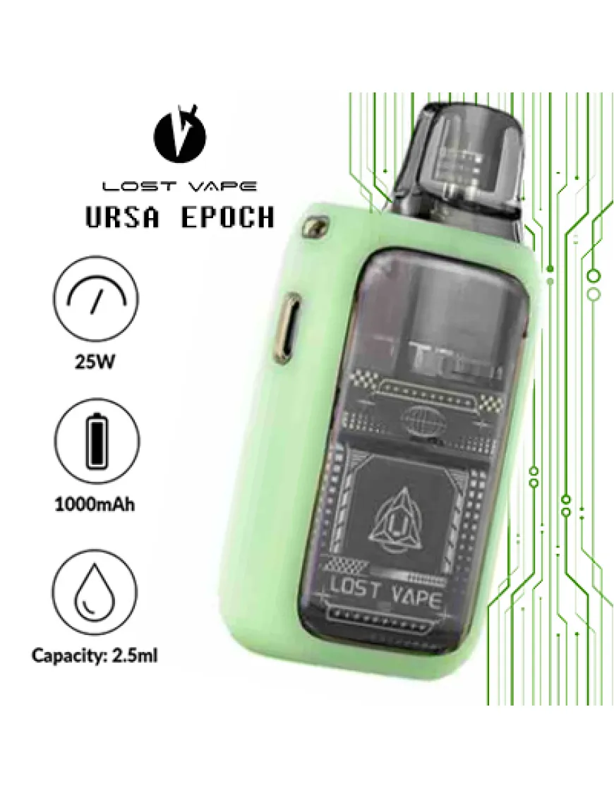 Lost Vape Ursa Epoch Pod Kit 1000 мАг - портативная Pod система, оснащенная мощным аккумулятором, автоматической подстройкой мощности и настраиваемым обдувом. Устройство выполнено в карманном форм-факторе с пластиковым корпусом и эргономичным силиконовым покрытием. Интерфейс новинки, несмотря на наличие мелкого монохромного дисплея, бескнопочный – активация достигается исключительно по затяжке. Мощность автоматически подстраивается под значение сопротивления установленного картриджа. Питание Ursa Epoch обеспечивается встроенным аккумулятором, емкостью 1000 мАч, а это довольно приличный показатель. Зарядка аккумулятора производится при помощи разъема USB Type-C, расположенного на нижнем торце устройства, током 1А. Для регулировки интенсивности затяжки в устройстве предусмотрен аккуратный ползунок на боковом торце устройства. В комплект устройства входит один картридж со встроенным испарителем из новой линейки Ursa V2, но осталась поддержка и предыдущих картриджей серии Ursa.